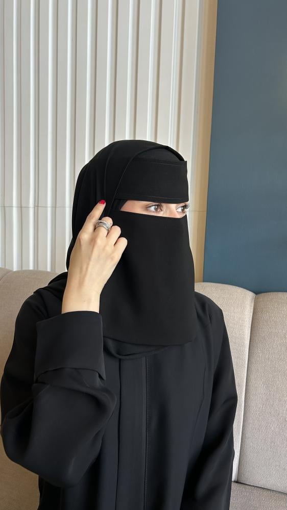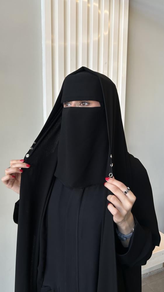 طرحة آسلين المثلثة توجد ثلاثة طقطق للتحكم بالمقاس لثباتها .
