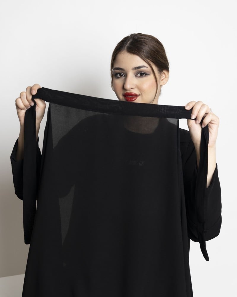 نقاب مبطن حرير فرنسي وسط أسود، وسط ٨ انش .